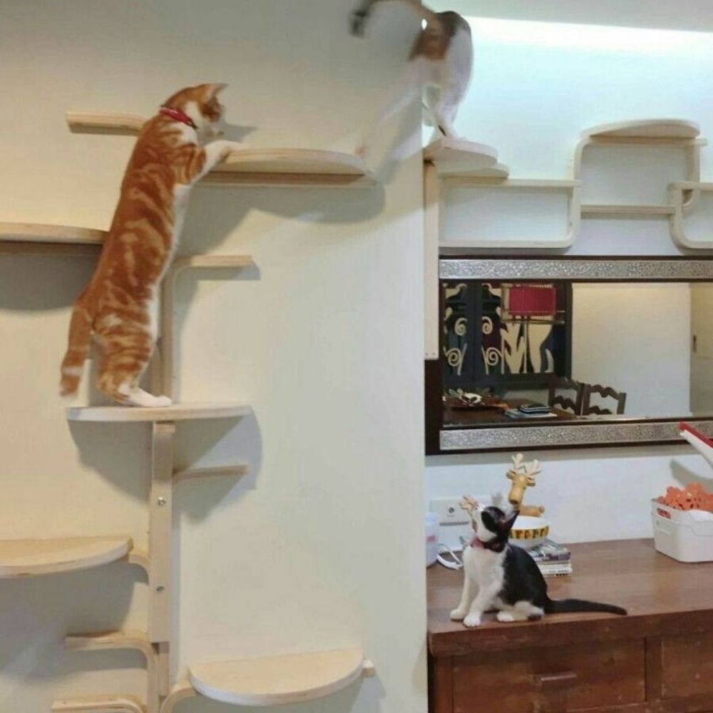 Many people think cats are sort of lazy pets, but that is far from the truth. They love to play and climb, which means having a nice kitty tree is always a good addition to any cat lover’s household. This person got a little creative.