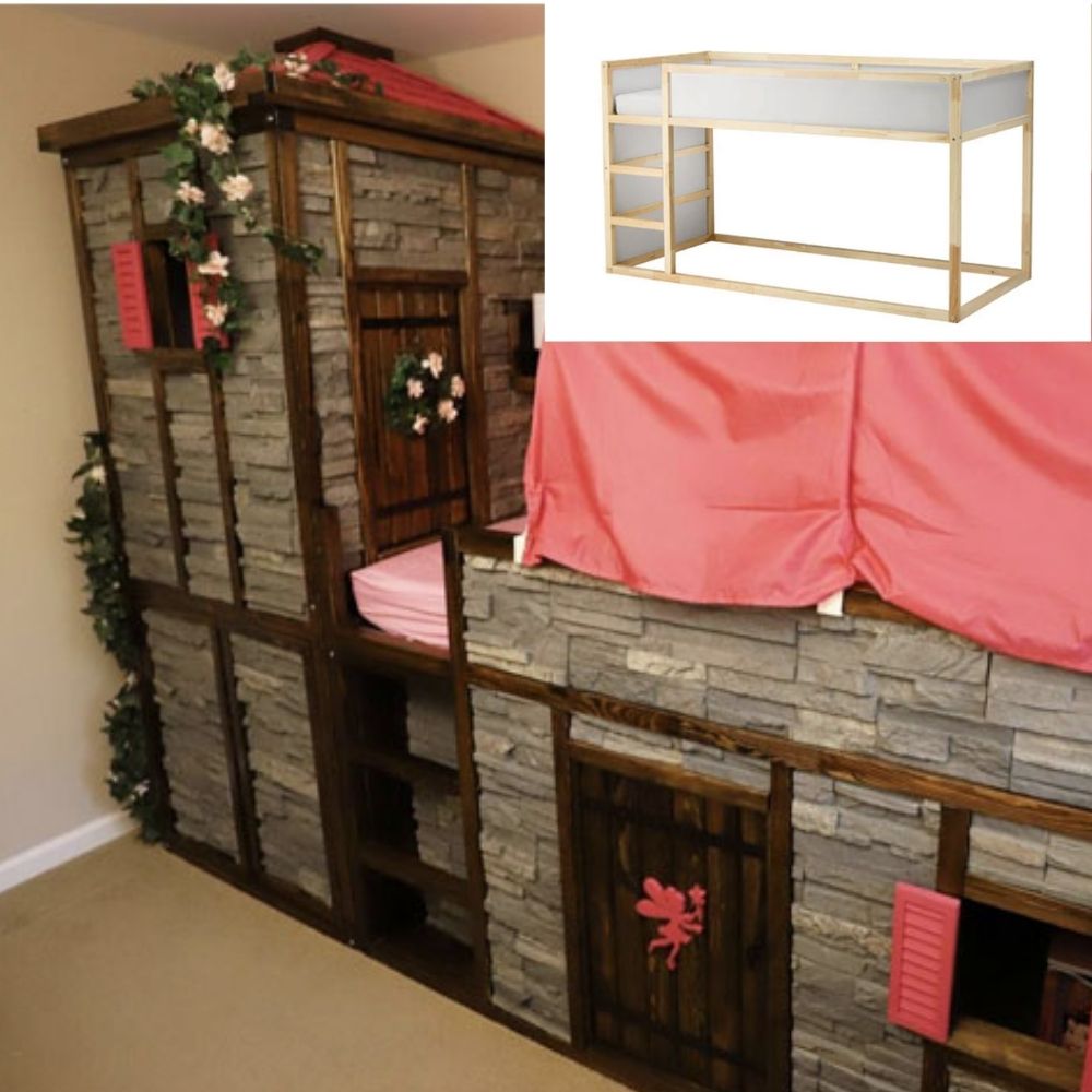 Little boys have their race car and superhero beds, and this little girl has a castle bed. Her parents took the IKEA Kura Bed and added some creativity to it in order to create this beautiful fairytale castle bed.