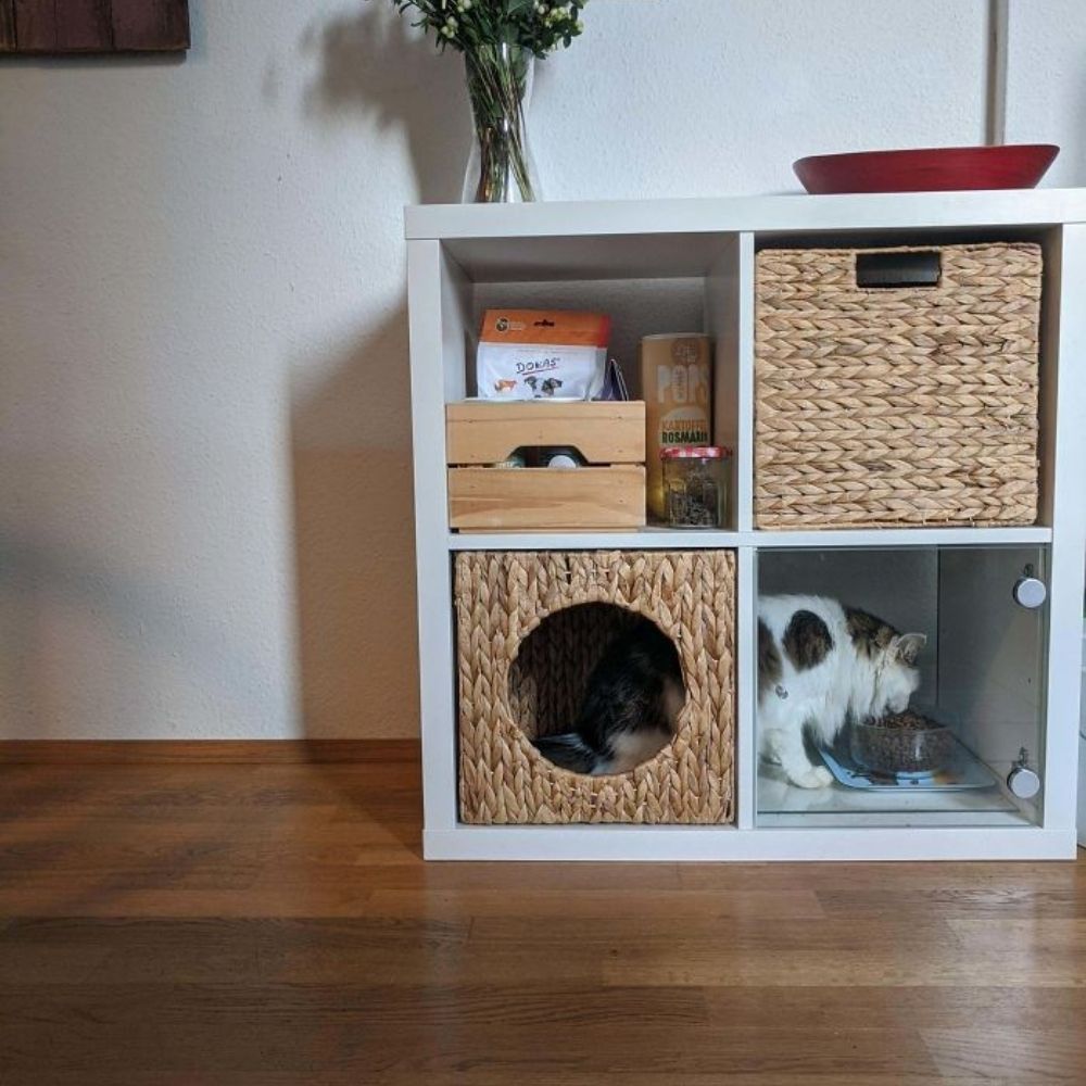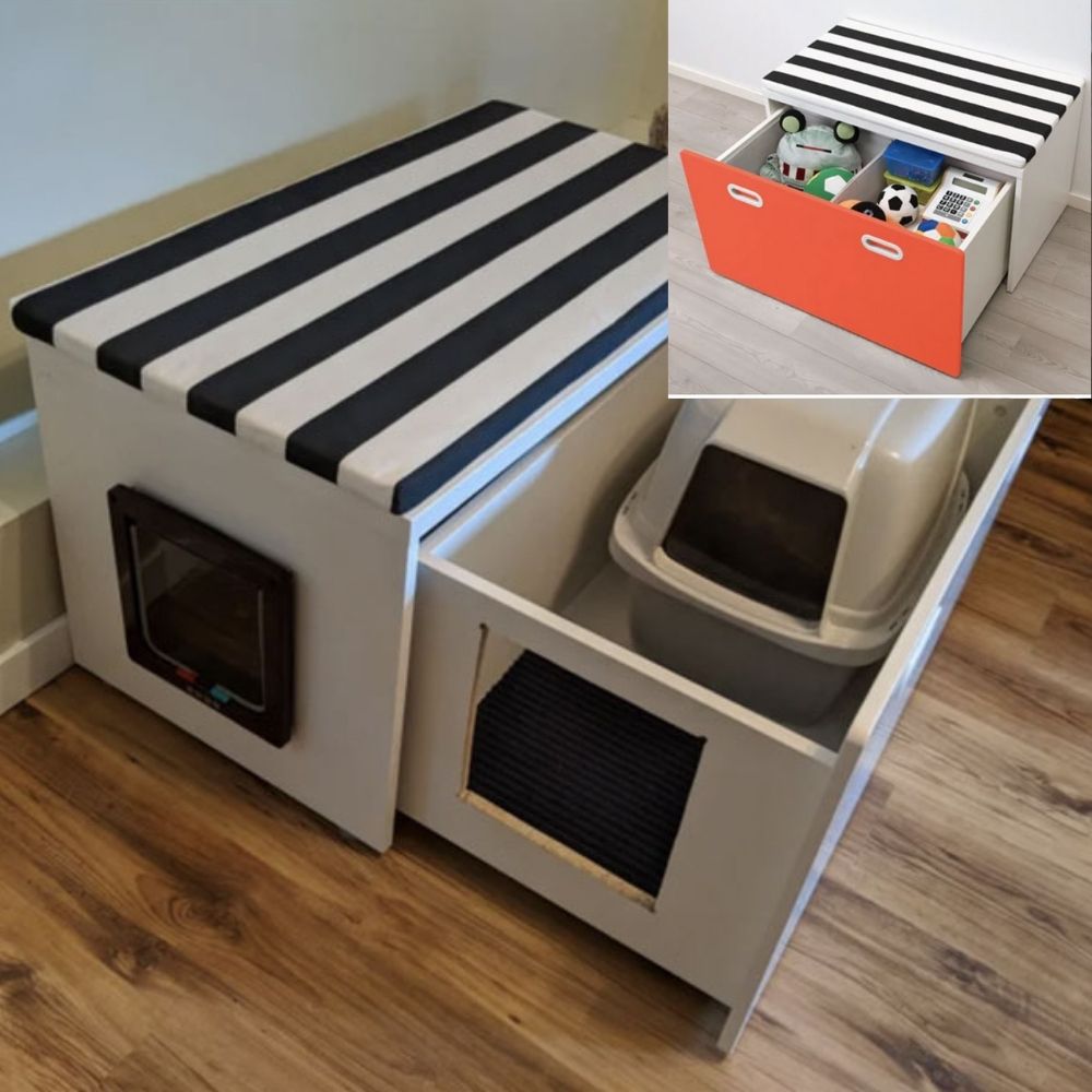 But, by using this Fritids piece, this person has created a hidden litter box and a bench. Now, not only did they save space but they also got rid of an eyesore. All they had to do was cut a hole in the side of the piece so the kitty is able to get in and out with no issues.