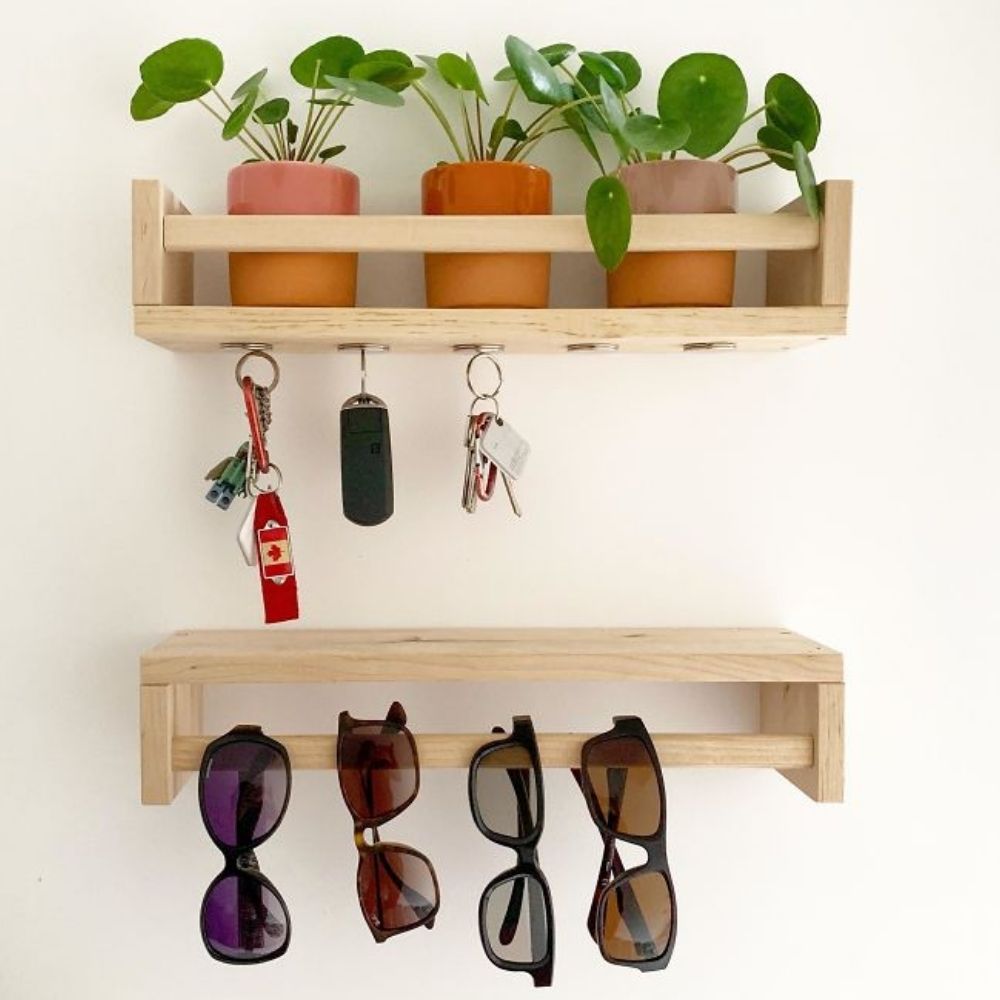 Taking a set of Bekvam Spice Racks and adding a few magnets to them gave this person these cute little shelves to house their keys and shades. They left the raw wood, but you could also paint them if you wanted to.