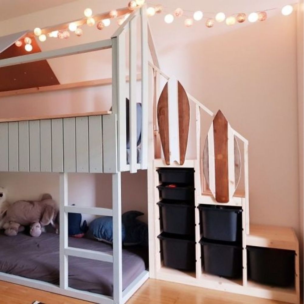 They connected the Kura bed to the Trofast steps, added some paint and a few wooden planks — and out came this masterpiece. What was once just a simple bed is now a hangout spot that all the kids want to be a part of.