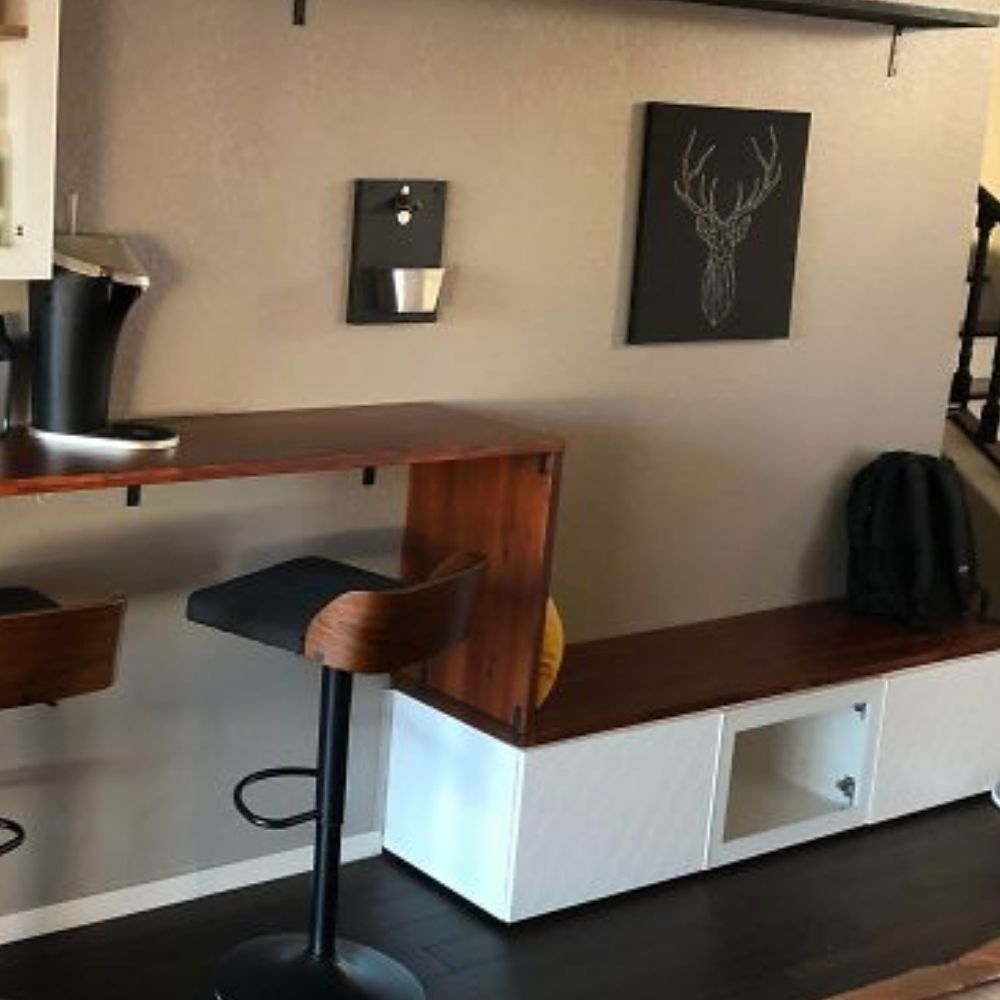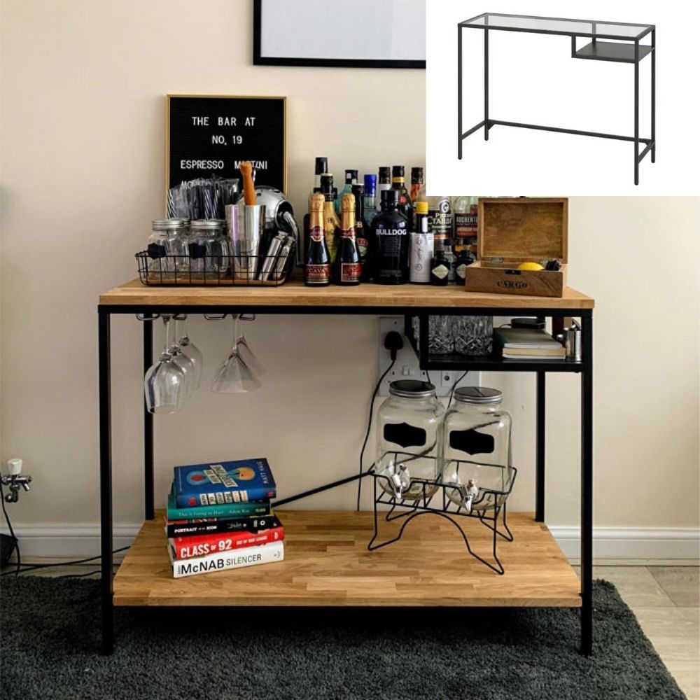 By taking the Vittsjö table and adding a wood top and bottom to it, this individual instantly created a drink station with all the works. You can even mount some pegs to the underside of the table in order to hang some glasses.