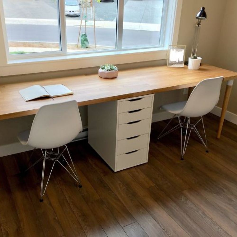 Combine a Karlby Countertop with a drawer system and attach some legs to create a nice, spacious workstation for you and significant other or roommate.
