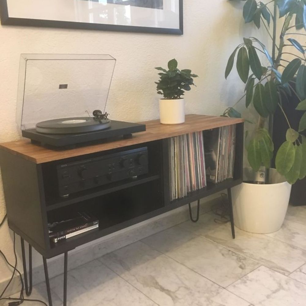 This music connoisseur clearly feels that way as they took a simple piece of IKEA furniture and added some legs — as well as a wooden top — to create their very own music station.