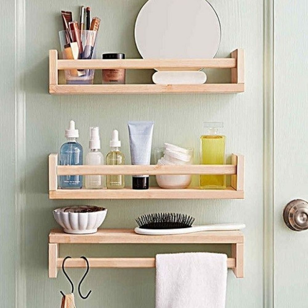 By taking IKEA Spice Racks and mounting them to the bathroom door, this person has done an awesome job using what they have. Plus, now everything looks tidy as well as organized.