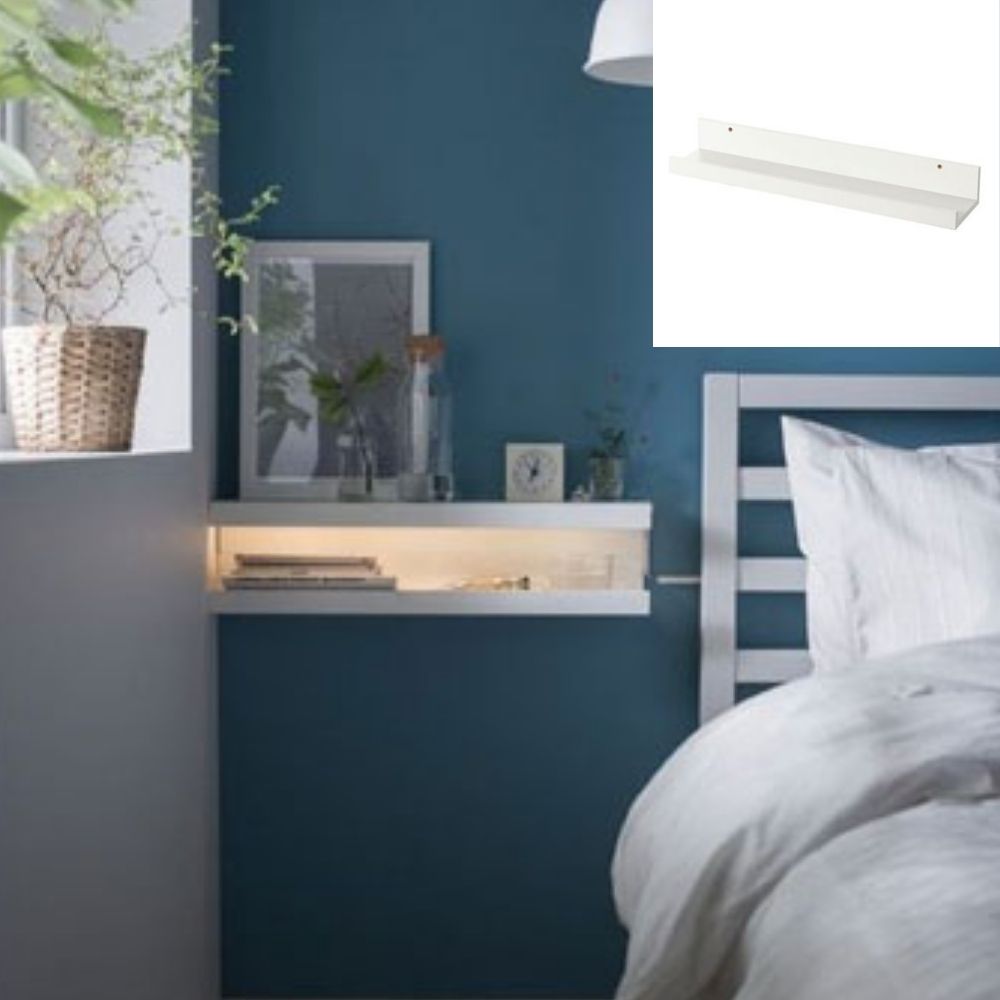 By taking a Malm headboard and mounting it against the wall, you can get a nice little cubby where you can store things out of sight.