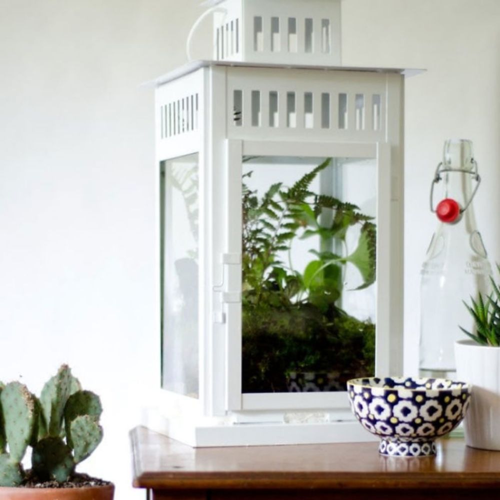 So, this person decided to grab an IKEA lamp and paint it. Then, they add some plant life inside to give it a unique look. You could try this same hack but with a seascape theme or perhaps, a desert. Whatever you think will work with your motif.