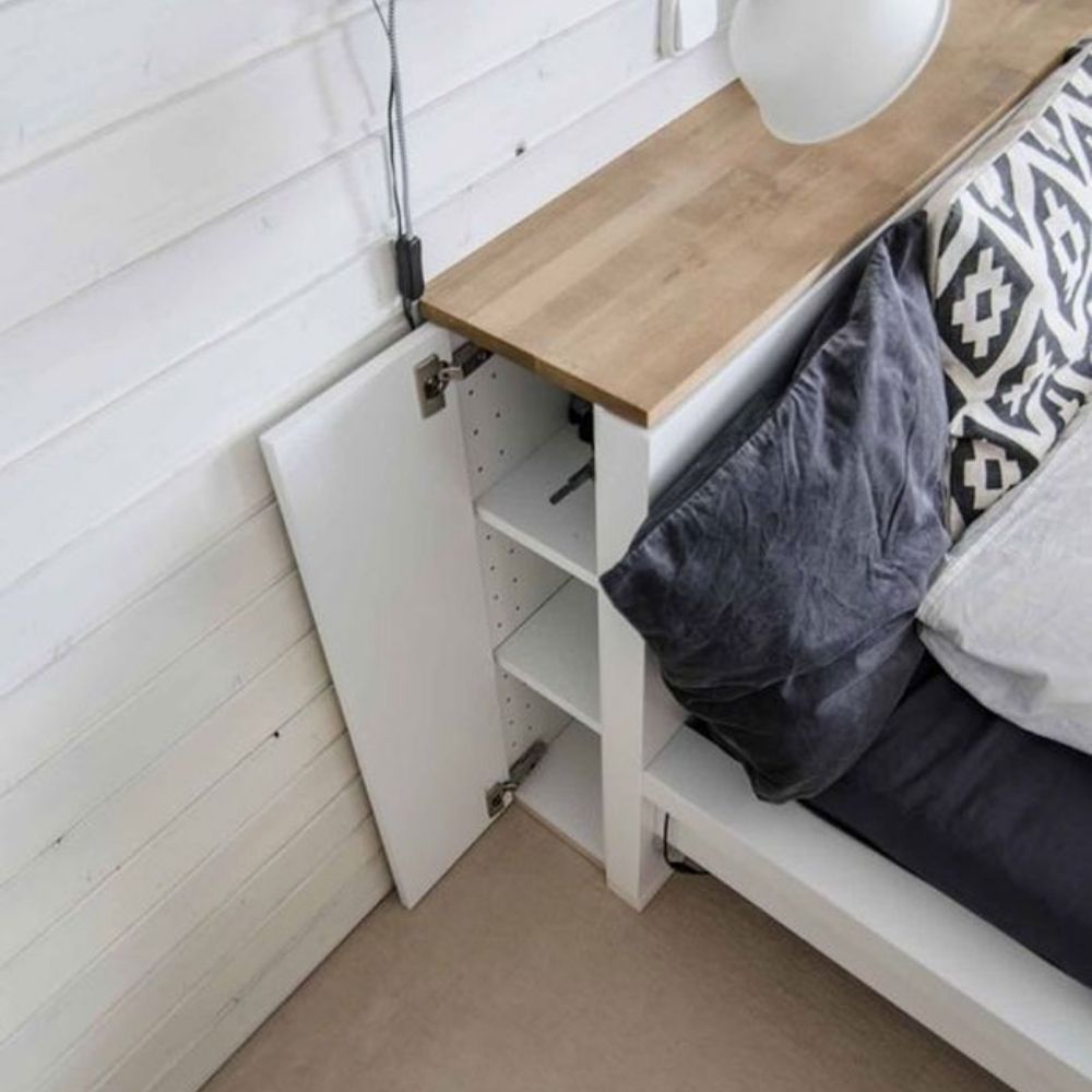 Always looking for more space? Well, why not add some storage to your headboard? This might even alleviate the need for a bed stand if you want a cleaner aesthetic in your bedroom.