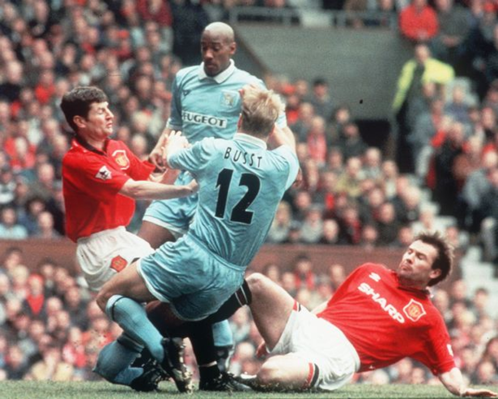 This professional English soccer player was playing against Manchester United in 1996 when he suffered his career-ending injury. Much like another soccer player on this list, he suffered two compound fractures in both bones of his lower right leg.