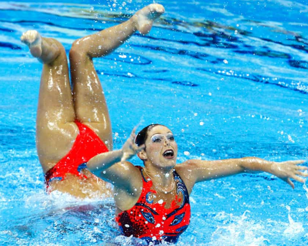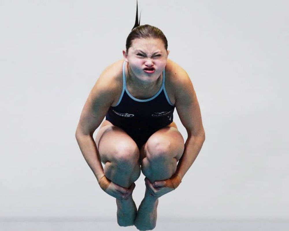 This athlete looks like they weren’t ready for their closeup here but it actually is an amazing picture. The photographer has caught this athlete mid-dive. That explains why she’s in such a braced position and her expression is so focused. You can’t get more action-packed than this photo!