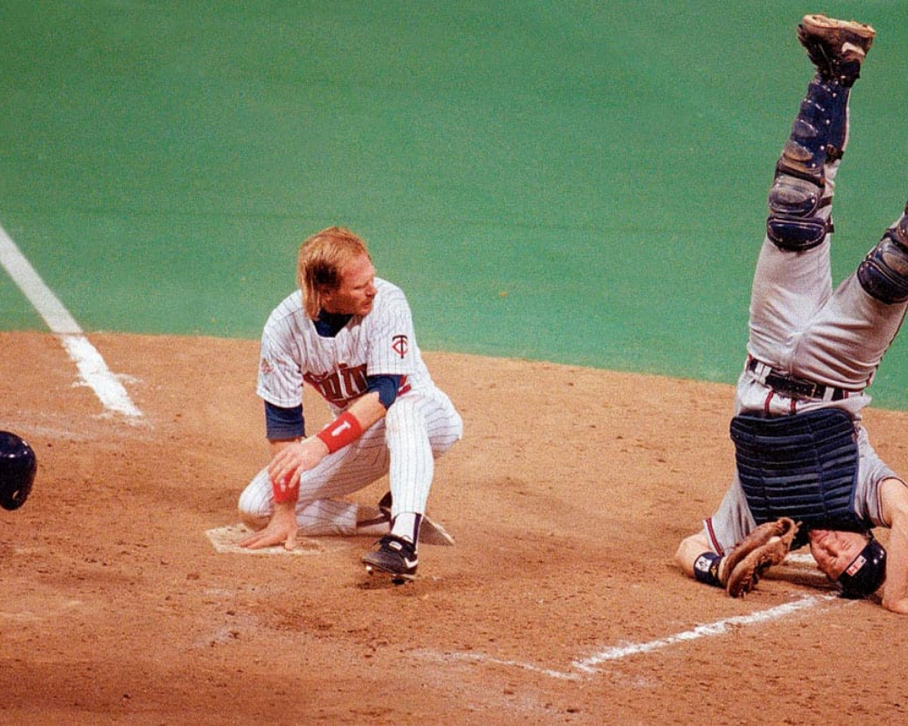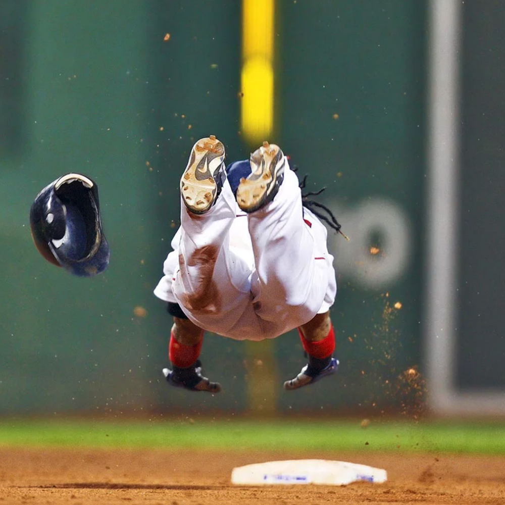 First of all, it’s important to note not only the position of this person but their helmet across the frame as well. To make it even more like a painting, there’s even someone in the center, reacting in real-time as it happens. Still, we hope that this baseball player made it out of this okay.