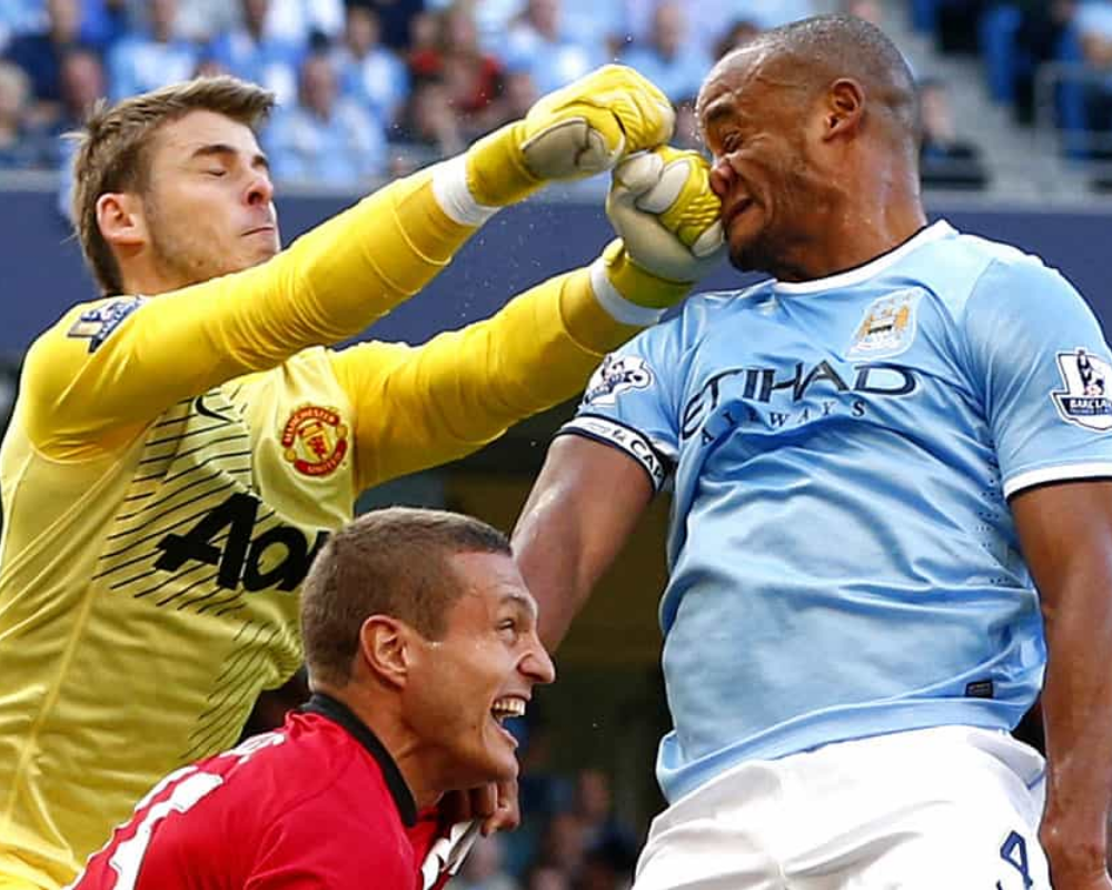 This pair of players were trying to handle the ball when one kick was severely misplaced. While it’s clearly an accident and the kick was meant for the soccer ball, this photo catches their faces in this moment showing their emotions as it happened. We hope they at least got a time out to recover.