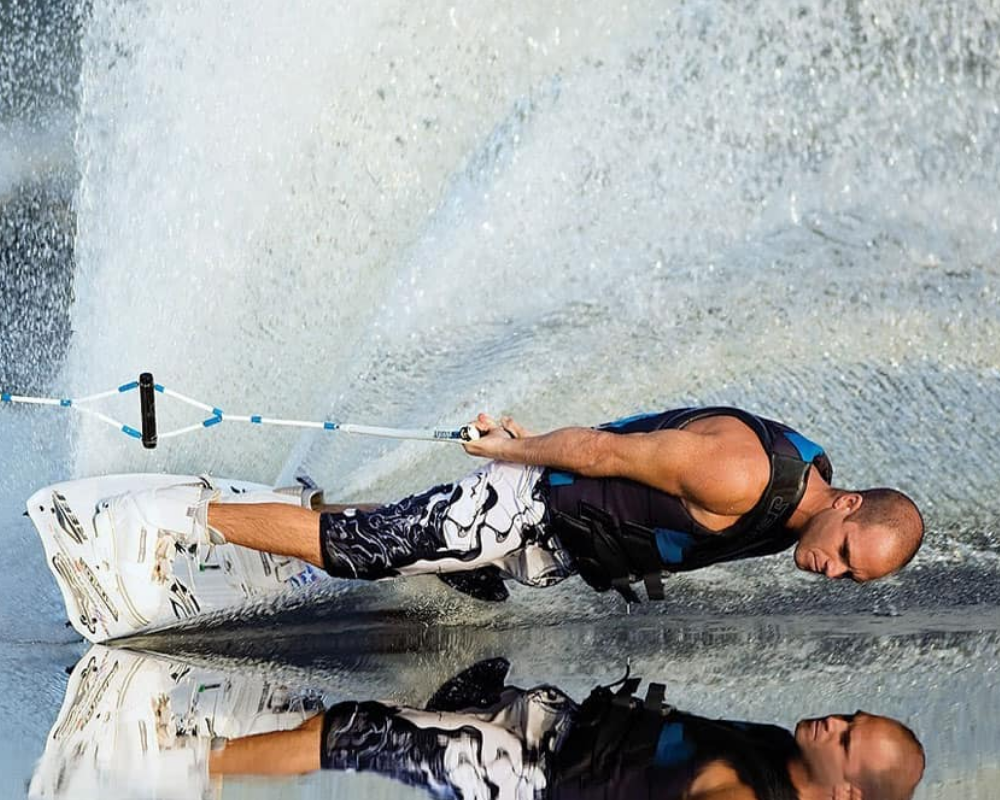 This photo shows that off rather well. While most people watching this athlete at the moment noticed his rapidly changing position, they may not have seen this right away. The athlete managed to lean so far that he was parallel to the water. He could look at his own reflection!