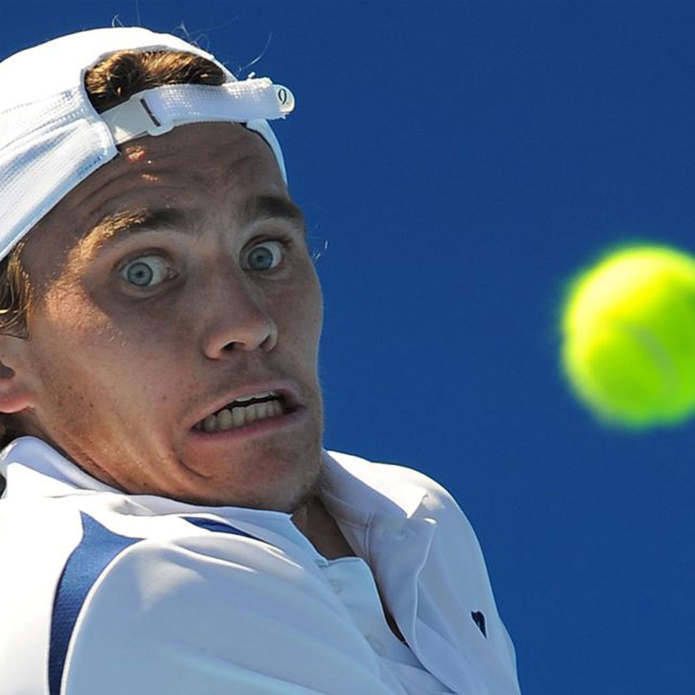 The tennis player in the picture is actually Louk Sorenson, an Irish athlete. The picture was taken at the 2010 Australian Open where Sorenson actually made history. We’re glad that he dodged the ball moving towards his face here because he went on to be the first Irish player to win a match there.