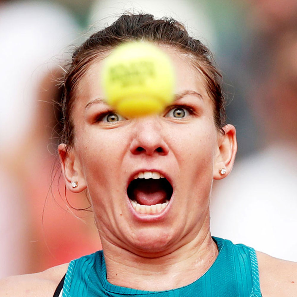 The athlete in the picture is Simona Halep, a Romanian tennis player. One of the things that makes this photo so memorable is how raw it is. Halep couldn’t hide the look on her face right before this ball came dangerously close. We wouldn’t be able to either!
