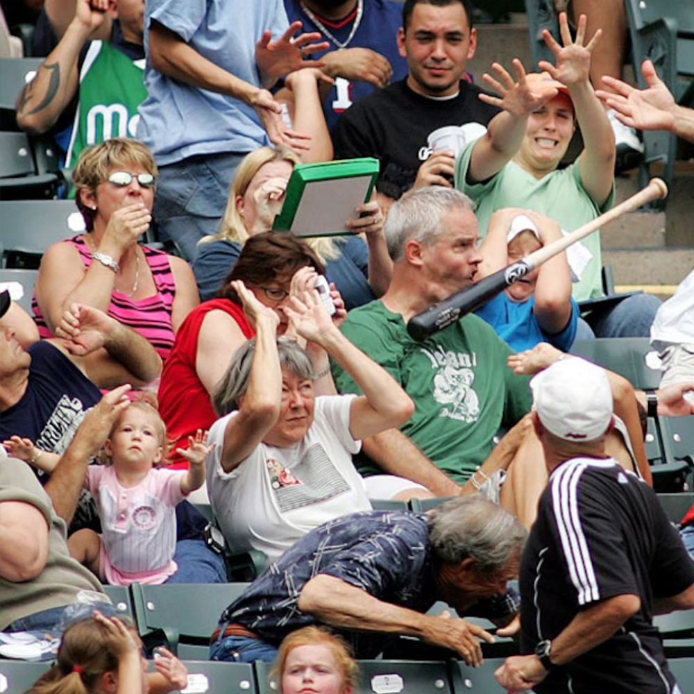 What you might not expect out of these possibilities, is a bat rather than a ball flying into the crowd. This would be pretty scary considering a wayward bat can be dangerous. This is especially true of a wayward bat that was tossed by a professional athlete. This person could probably stand some ice.