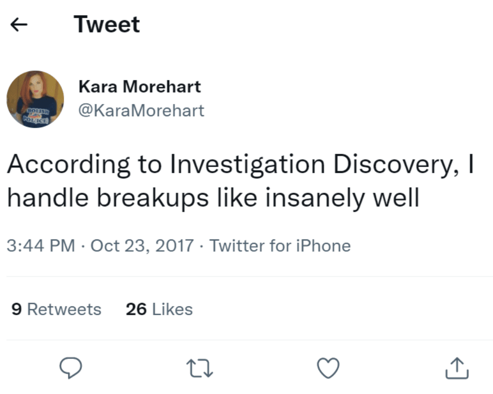 Wenn du erst einmal aus der Situation heraus bist, ist es vielleicht einfacher, einen Sinn für Humor zu haben, auch wenn es keine Zeit braucht, wenn du wirklich über das Drama hinweg bist. Zumindest fand das diese Person, als sie beschloss, dass sie etwas gefunden hatte, das ihre Beziehung zu gut beschrieb, um es zu ignorieren.