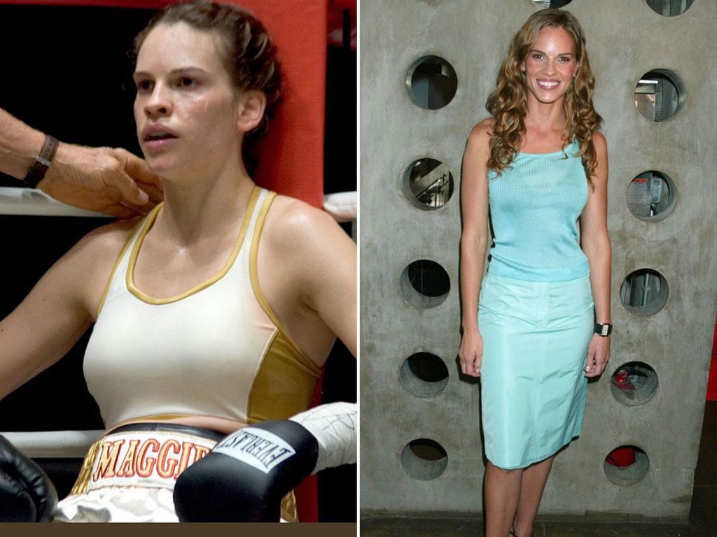 Hillary Swank è nota per essere una delle attrici più camaleontiche di Hollywood. Era irriconoscibile come Brandon Teena nel suo ruolo di successo in Boys Don’t Cry. Ma c’è una trasformazione fisica che spicca nella sua carriera. Ha incarnato perfettamente la pugile Maggie Fitzgerald in Million Dollar Baby, fino al suo fisico strappato. Per il ruolo, Hillary consumava almeno 210 grammi di proteine al giorno e si allenava intensamente sei volte alla settimana.