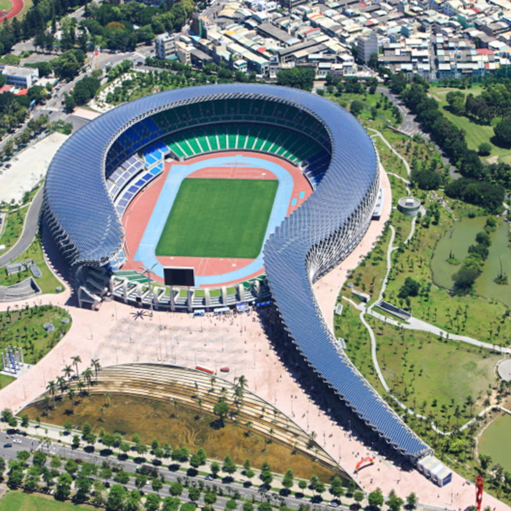 Roughly 60-70% of the stadium’s outer surface is comprised of solar panels, and the stadium produces 1.1 million kilowatt-hours. It’s also the first stadium in Taiwan to be certified for gold-level green building.