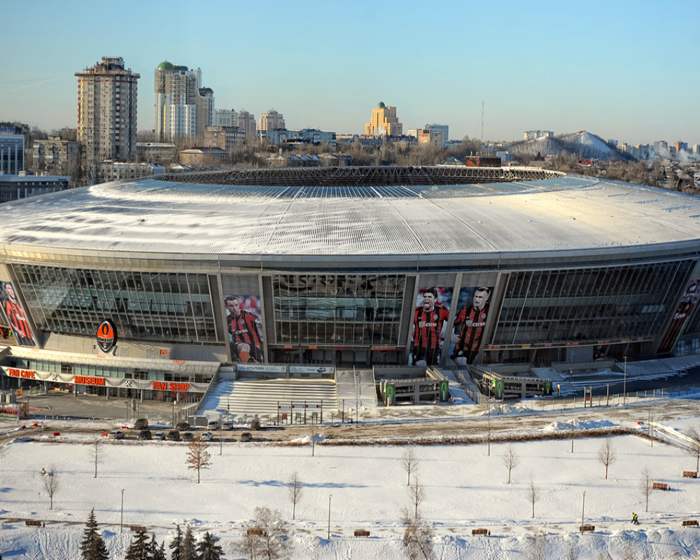 It has a very peculiar roof that makes it look a lot like a UFO, something that is definitely supported by the way it lights up at night. It is home to the soccer team FC Shakhtar Donetsk.