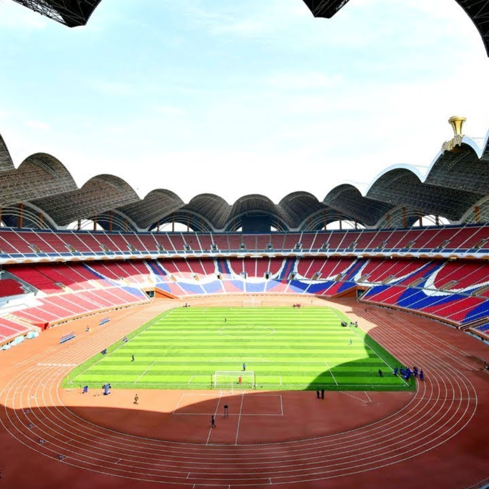 This stadium is one of the largest in the world, capable of holding 150,000 people and possessing a total floor space surpassing 2.2 million square feet. It was named for the Rungnado islet of the Taedong River, which is near its location. It has a scalloped roof composed of 16 arches, intended to look like a magnolia blossom.