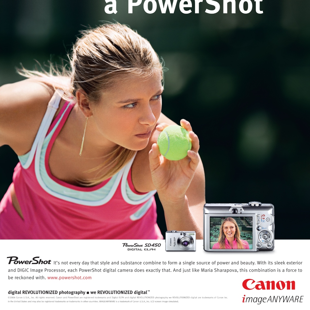 Easily the most quoted slogan by the superstar athlete, “Make every shot a Powershot,” Sharapova signed with Canon by the time she was 17 years old. And although it’s not the most common endorsement we can think of for an athlete, we have to admit that each and every commercial she appears in is gold.