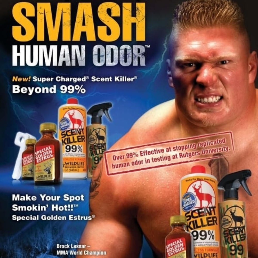 With that being said, we really couldn’t have thought of a better person to help market Super Charged Scent Killer — a hunting product used to mask human scent. While some would think it’s a bit random, Lesnar himself is an avid hunter so it does make sense.