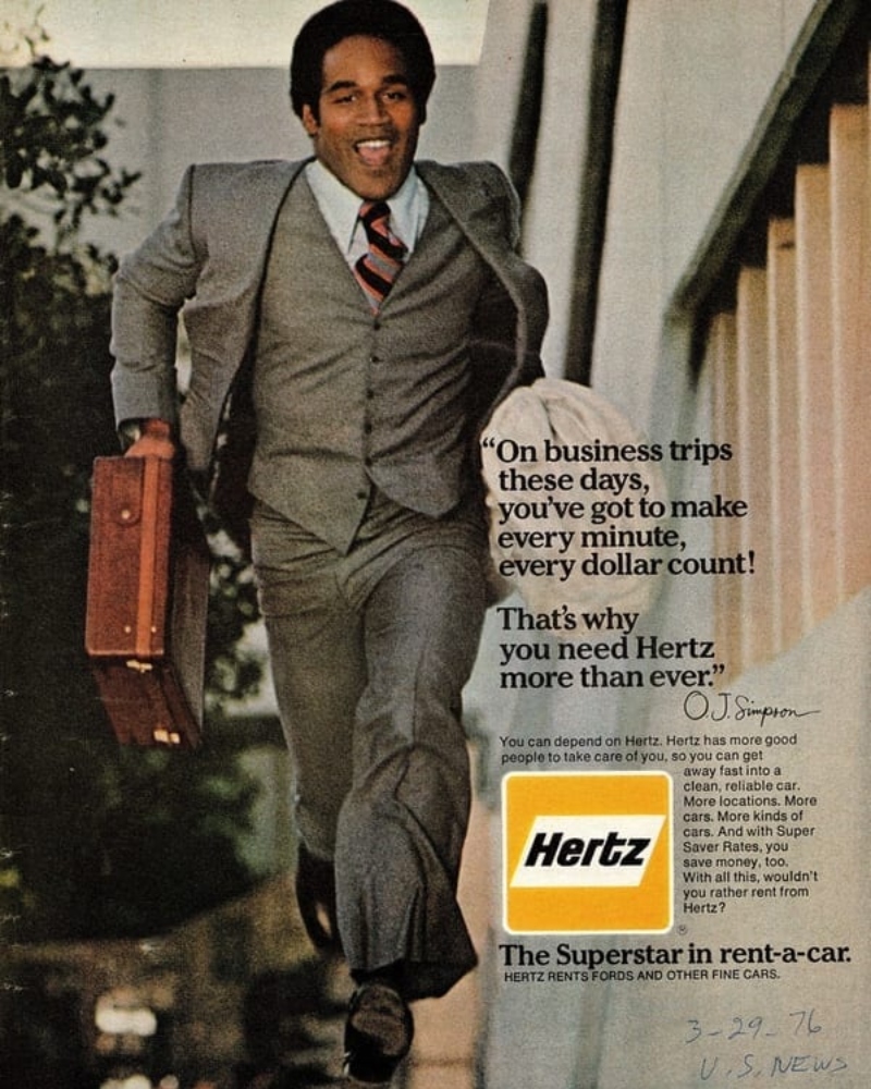 Alright, let’s just skip the whole introduction on this one — we all know who O.J. Simpson is. While there’s nothing necessarily strange about a bigtime athlete promoting a rental car service, we can’t help but feel like this is somewhat of a special case.