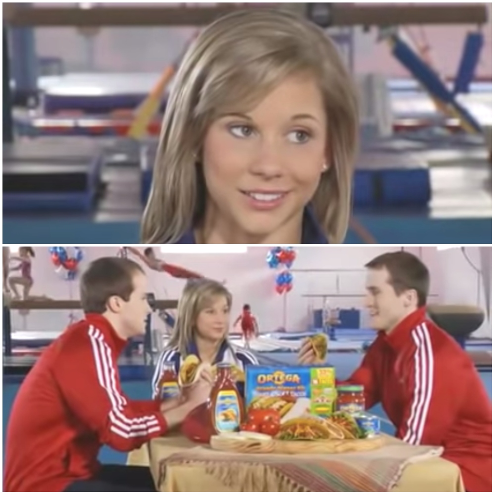 While we can understand why Johnson, along with two other gymnasts, was chosen to endorse the brand, Ortega promoted their food products in the most awkward way imaginable.