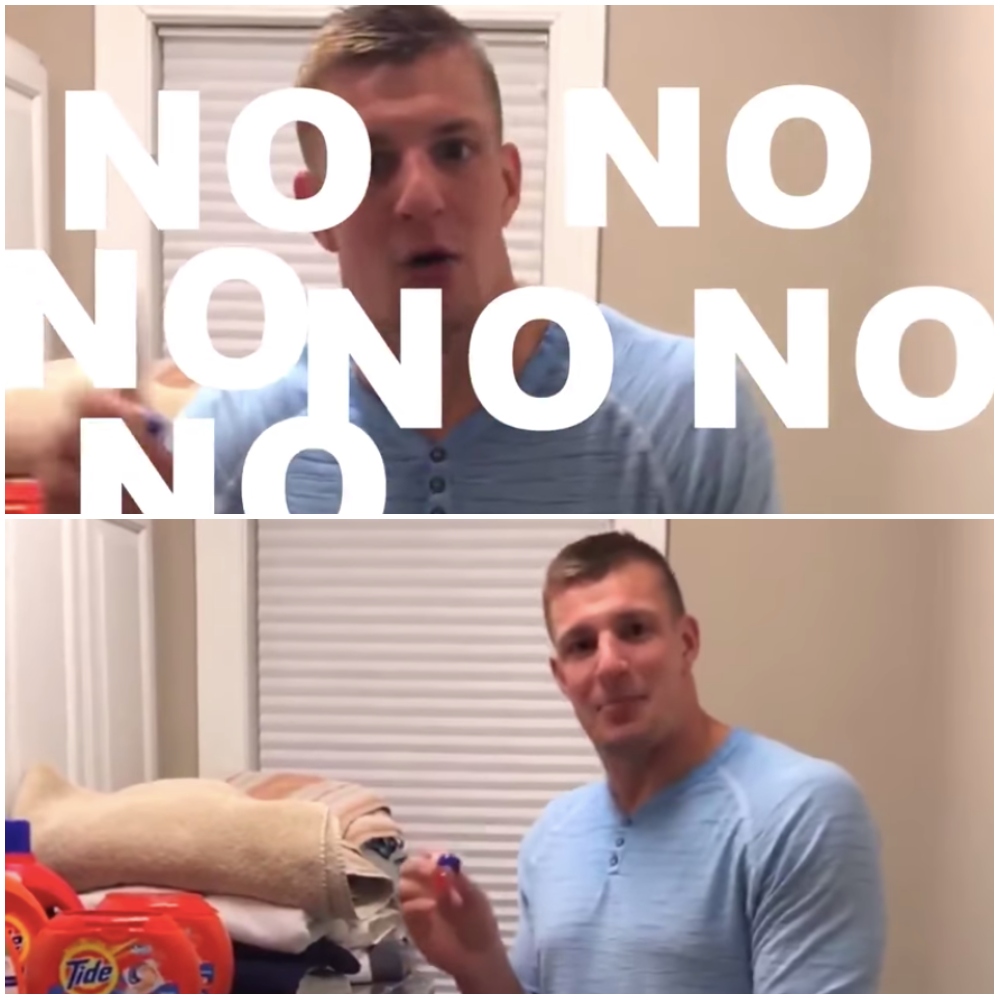 And while the commercial was quite brief, we do believe ‘Gronk’ was pretty compelling as he stood in his own laundry room and screamed “NO!” repeatedly before saying, “What the heck is going on people? Use TidePods for washing, not eating…”