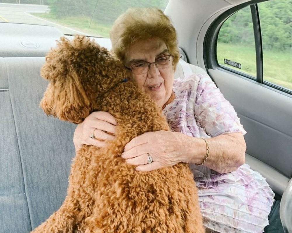 One social media user’s dog gets really anxious whenever they have to take a car ride. So, their grandma insisted on sitting in the back seat with the frizzy-haired Labradoodle. Well, we think he’s a Labradoodle, anyway. As they drove, all they heard emanating from the back seat were comforting words from grandma like, “It’s okay, we’re almost there, brave boy.”