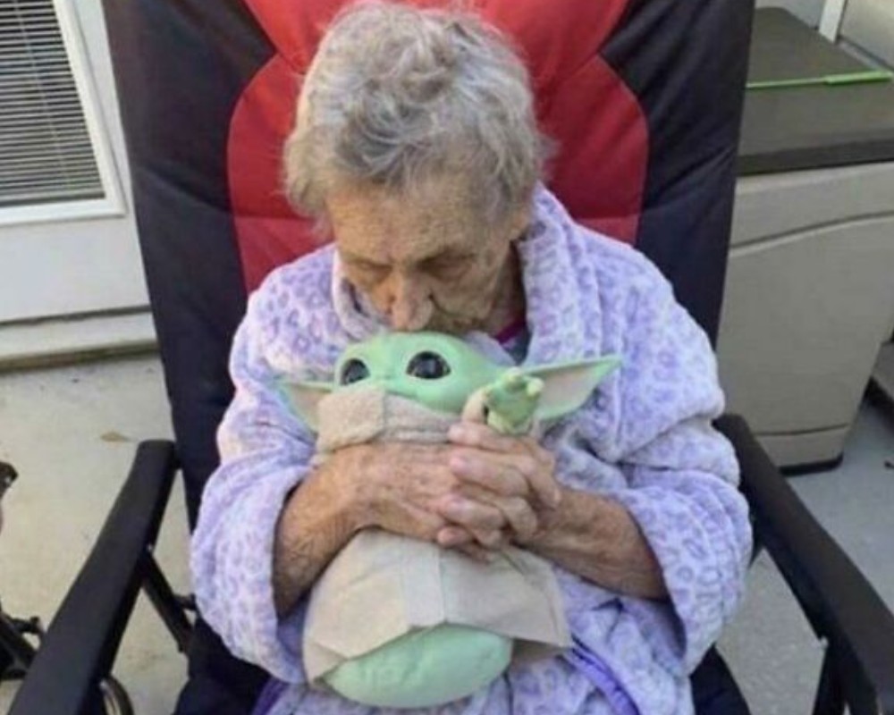 Sadly, this poster’s grandmother suffers from dementia. But, when they took their Baby Yoda toy along for a visit, grandma instantly fell in love with the little green critter. She seemingly won’t let Grogu out of her sight and has named him Lady Bug.