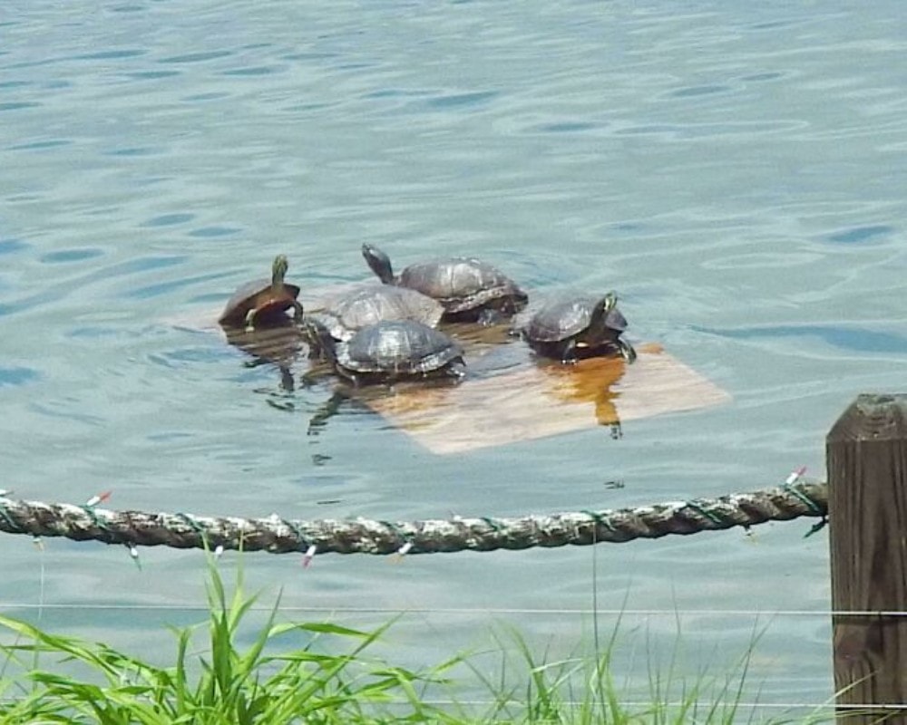 As you can see, the turtles took to the floating dock like ducks to water as the aquatic creatures seem to love soaking up the sun. Next on grandpa’s list is building a turtle hot tub. We just hope it’s not a turtle disaster!