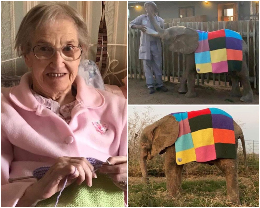 This story comes to us all the way from South Africa… via the UK. This British lady’s grandchild works on an elephant sanctuary, so when she heard the news that a baby elephant named Khanyisa had just been born, she decided to knit a blanket for her.