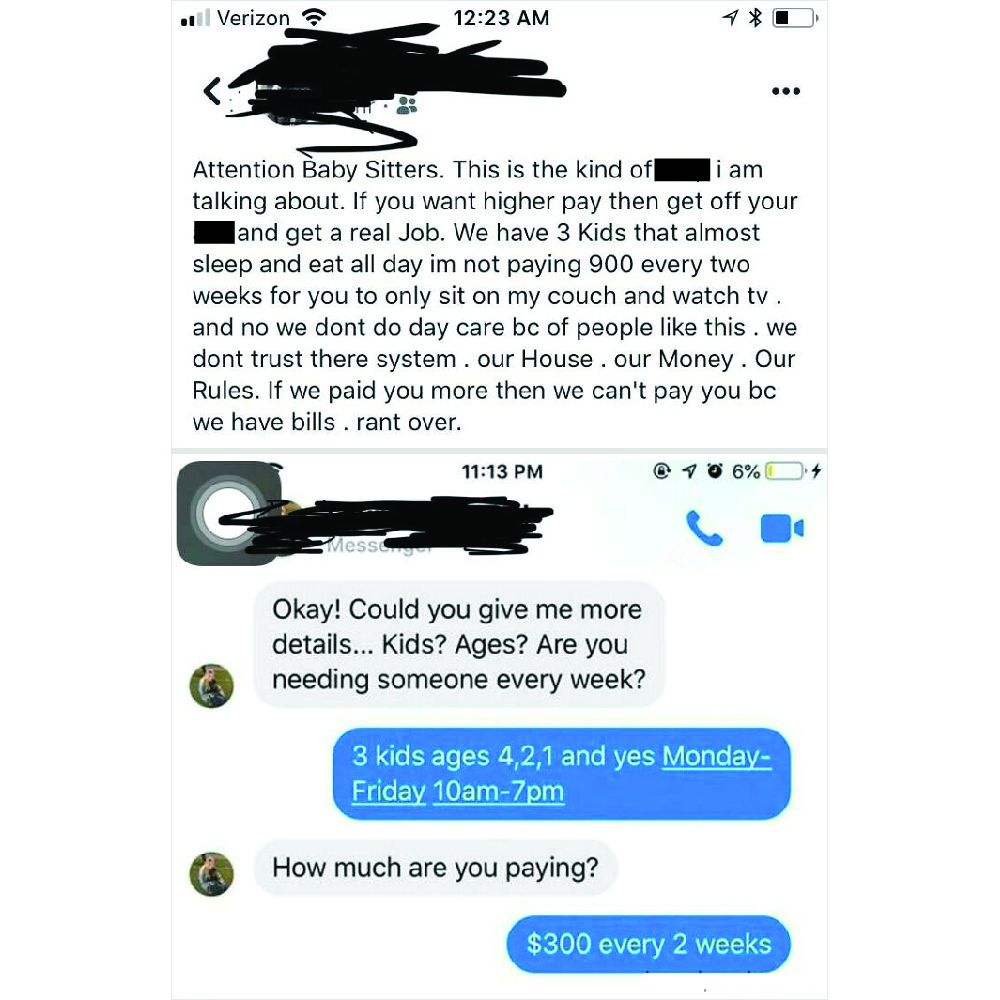 Even after the horrible pay discrimination existing in the market, inhumane people post these ads without the slightest bit of consideration. Making $25 a day for 10-hour workdays isn’t okay. It’s weird to even think a babysitter can make a living out of that.