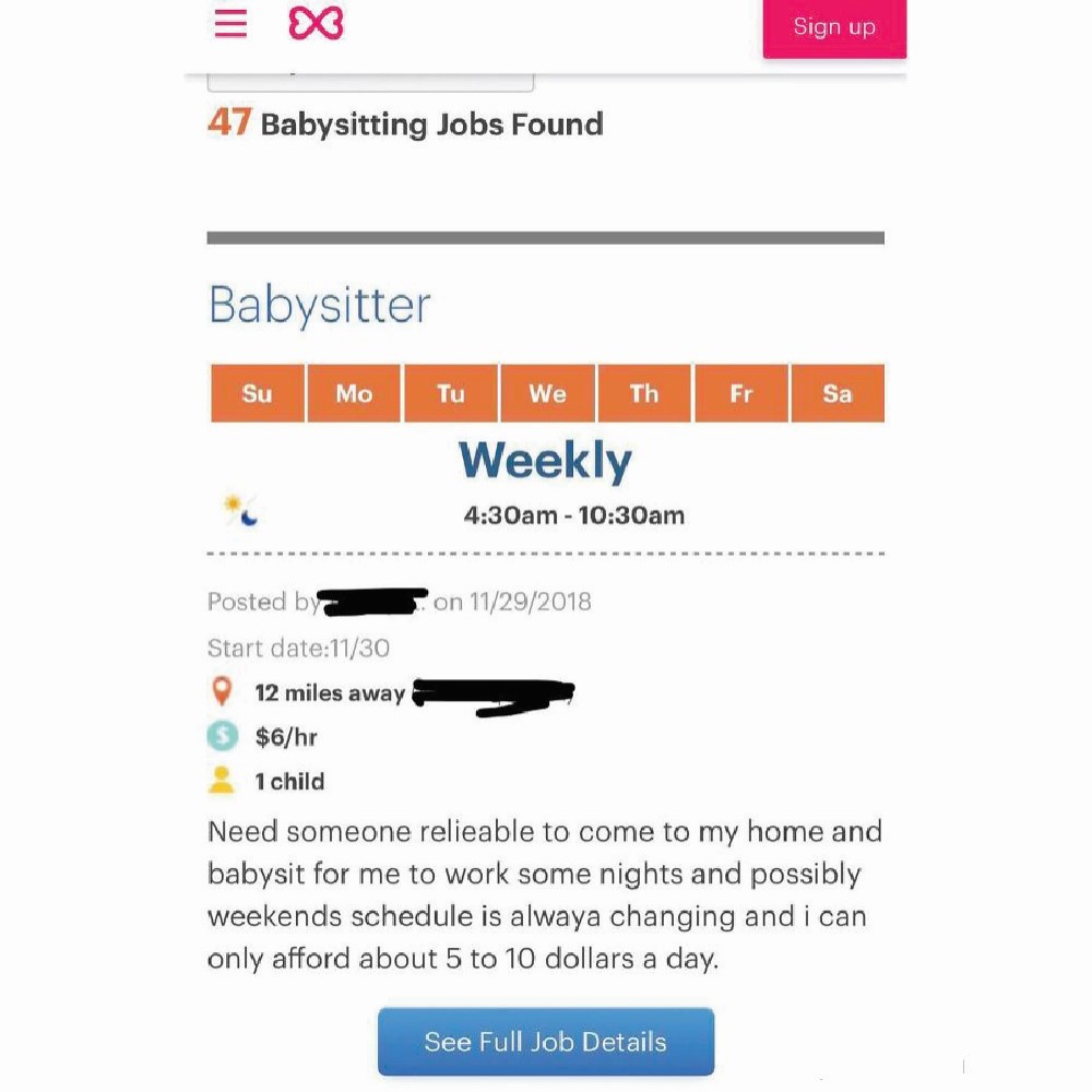 This has to be a clickbait of the worst kind! A parent posted an advertisement in search of a babysitter to come in weekly from 4:30 am to 10:30 am. While six dollars is still below the minimum wage line, that’s not even the worst part.