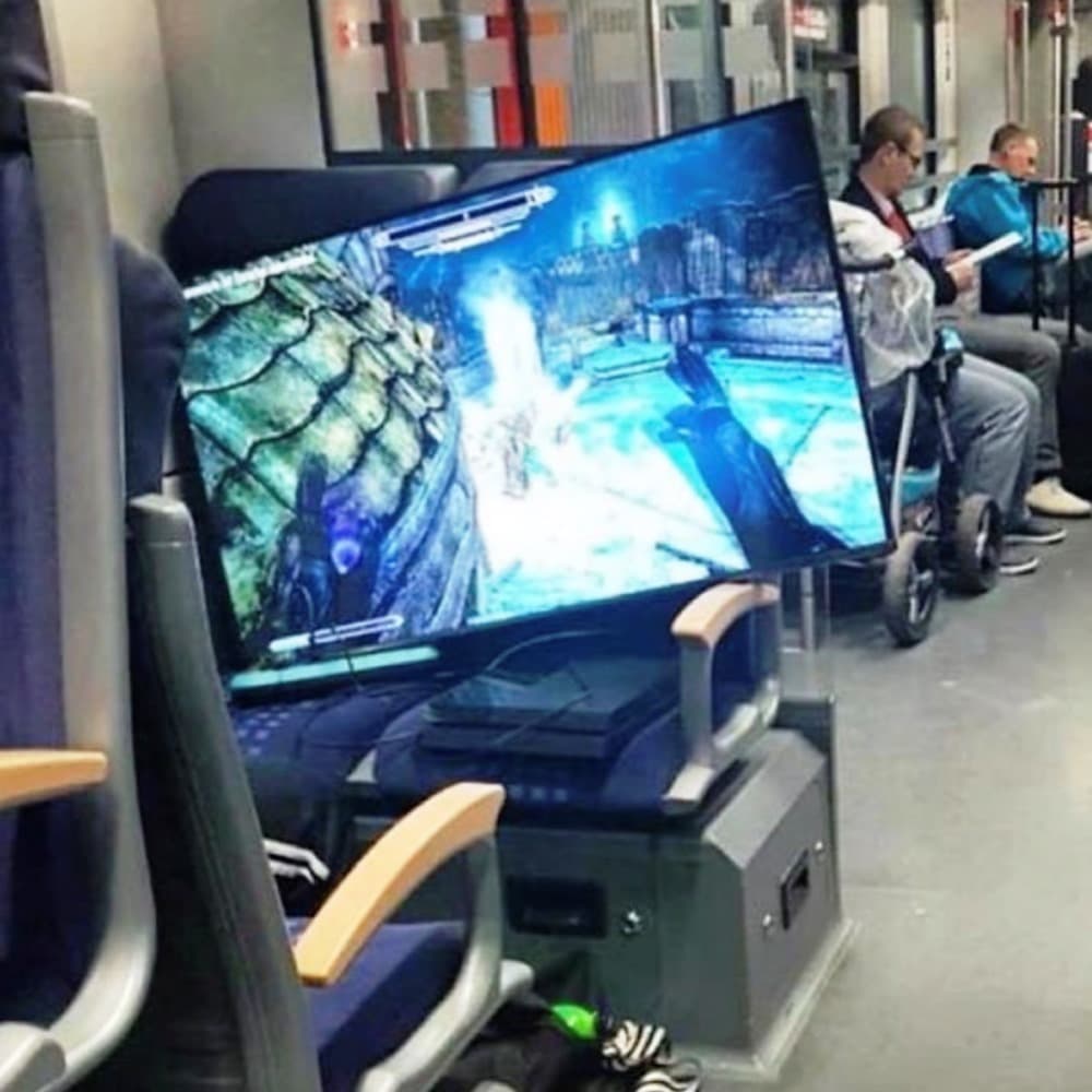 Mit einer Konsole und einem 32-Zoll-Flachbildfernseher gerät die Videospielsucht von jemandem wohl etwas außer Kontrolle.