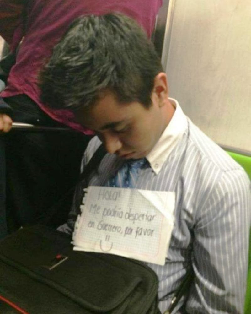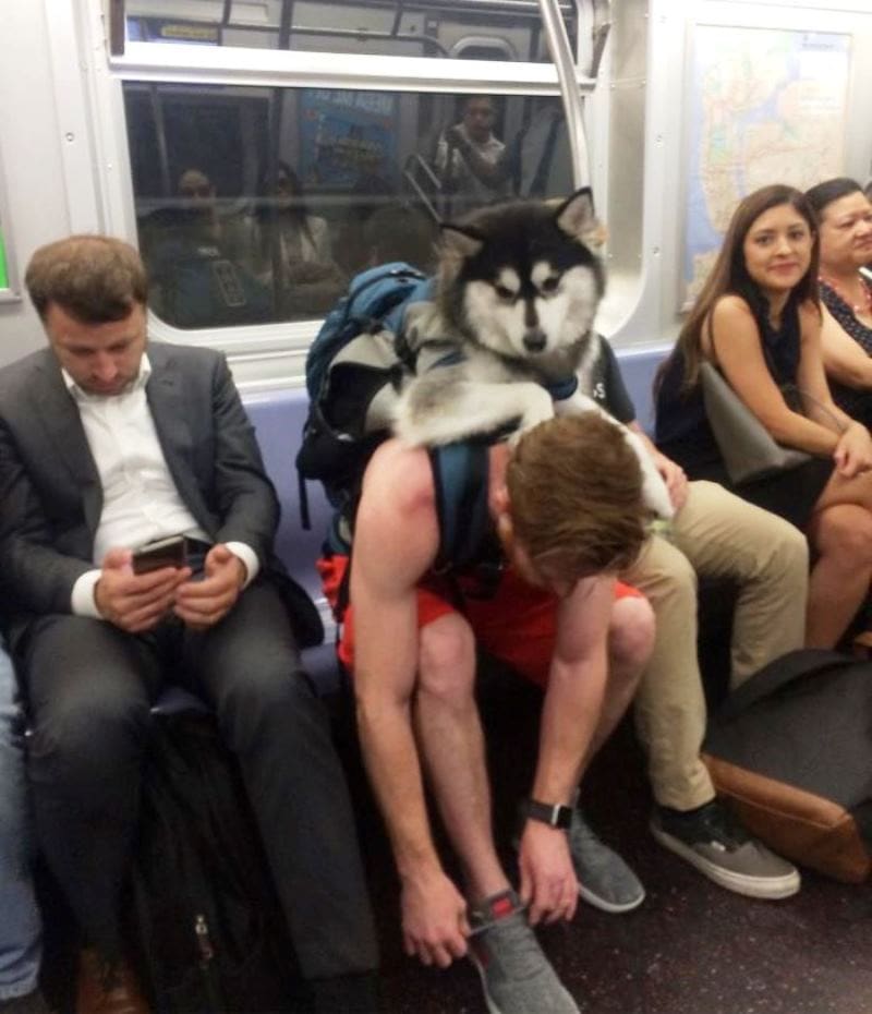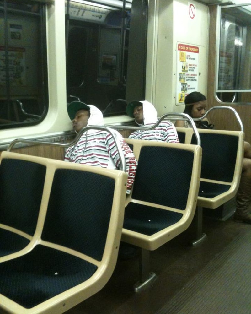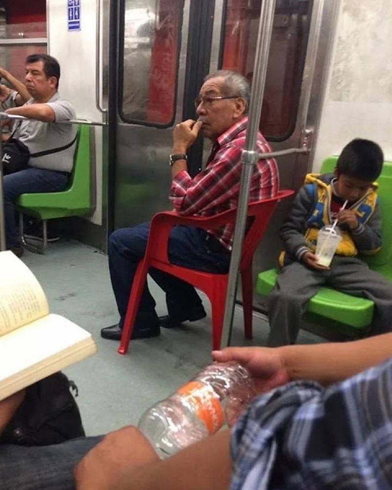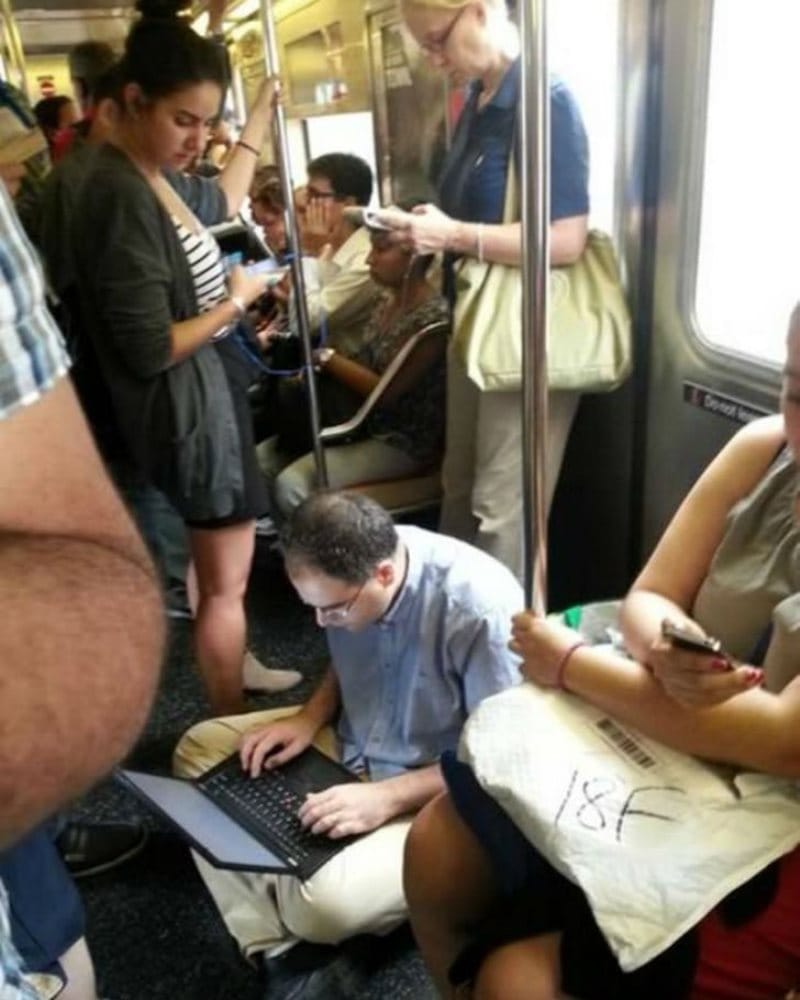 Einer unserer Lieblinge! Es ist wirklich eine ganz gewöhnliche Situation, aber perfekt eingefangen von demjenigen, der vor diesem Herrn auf den U-Bahn-Sitzen saß.