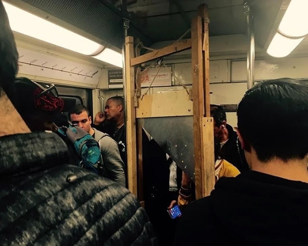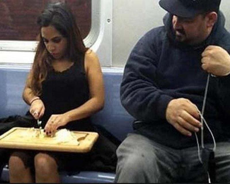 Und warum? Nun, weil wir jeden finden können, der ins Büro, zum Unterricht, zu einem mittelalterlichen Turnier oder zu einer Hochzeit geht, ja, wir machen keine Witze über das mittelalterliche Turnier. Aber überlassen wir es dieser Liste, die unwahrscheinlichen Szenen zu erklären, die das Reisen mit der U-Bahn unvergesslich machen.