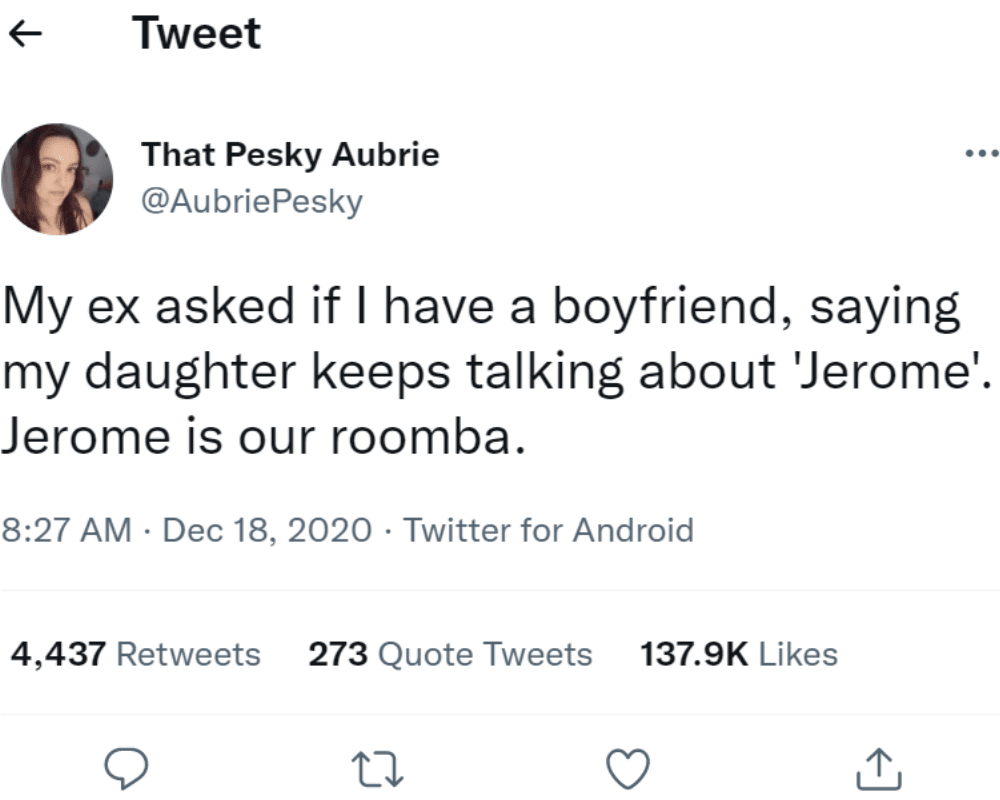 Warum also nicht diese beiden Probleme in einem einzigen zusammenfassen und ein wenig Trennungshumor an den Arbeitsplatz bringen? Ehrlich gesagt ist die Antwort dieser Person zwar nicht sehr aufschlussreich, aber sie ist zum Schmunzeln. Außerdem ist es ein effizienter Weg, um alle Ihre Ex-Partner auf einmal zu beleidigen.