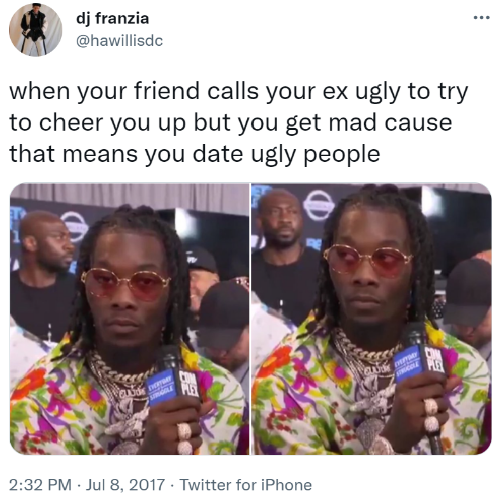 Wenn du eine Trennung durchmachst, ist das eine schwere Zeit. Zum Glück sind deine engsten Freunde wahrscheinlich bereit, dir dabei zu helfen. Diese Person hat einen Weg gefunden, die Stimmung aufzuhellen, als es um den Ex ihrer Freundin ging.